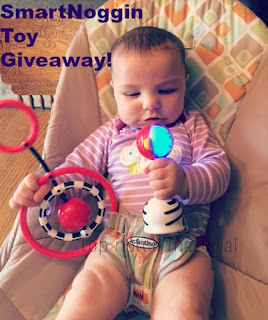 We love the SmartNoggin Developmental Light Up Rattle! One side of this toy has a mirror so baby can see herself, and the other side has a light that changes colors as she waves it around. This keeps her very entertained as she is fascinated with the ever changing lights. The middle of the toy has grips to help her hold it better and the toy itself has bright and contrasting colors to keep her interested. She also likes to use it as a chew toys as well, because at her age, everything goes in her mouth. It also has the typical rattling sounds that catches her attention as well. The lights stimulate her eyes, and the contrasting textures really fascinate her too. It is a favorite toy for her, and even entertains her during tummy time!