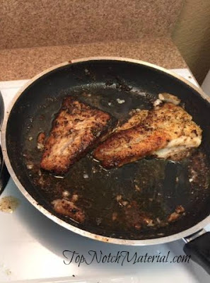 2. Season one side of the fish with lemon pepper seasoning and a little salt
